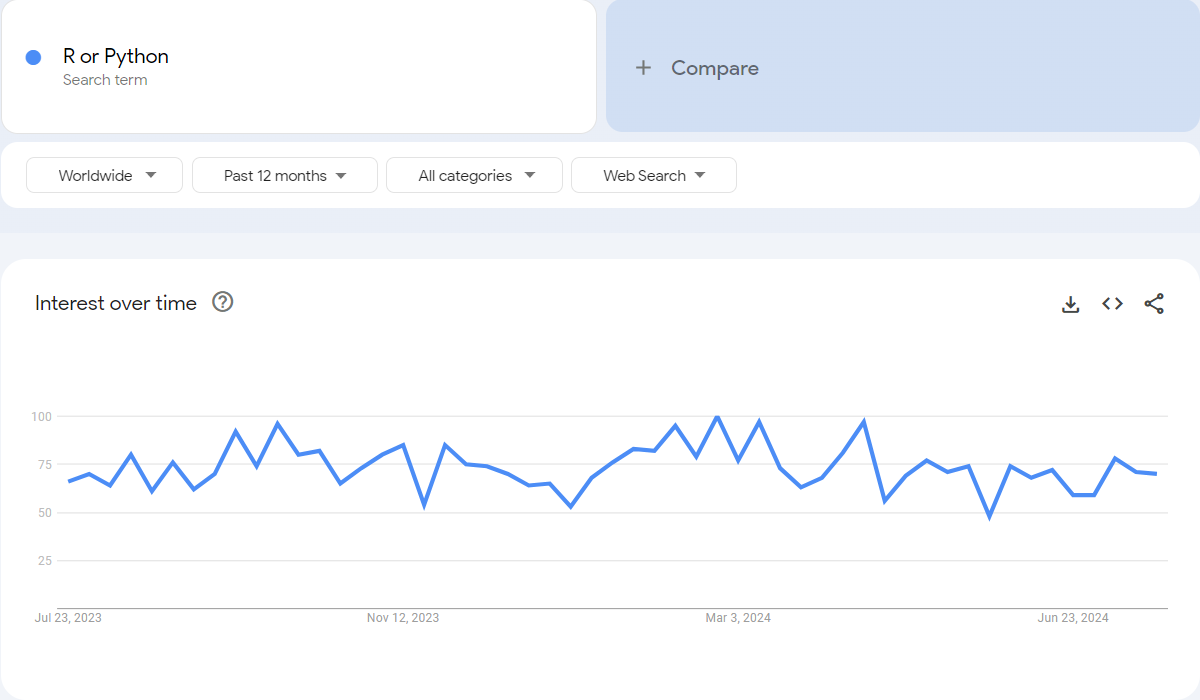 “R or Python” is a consistent search query: